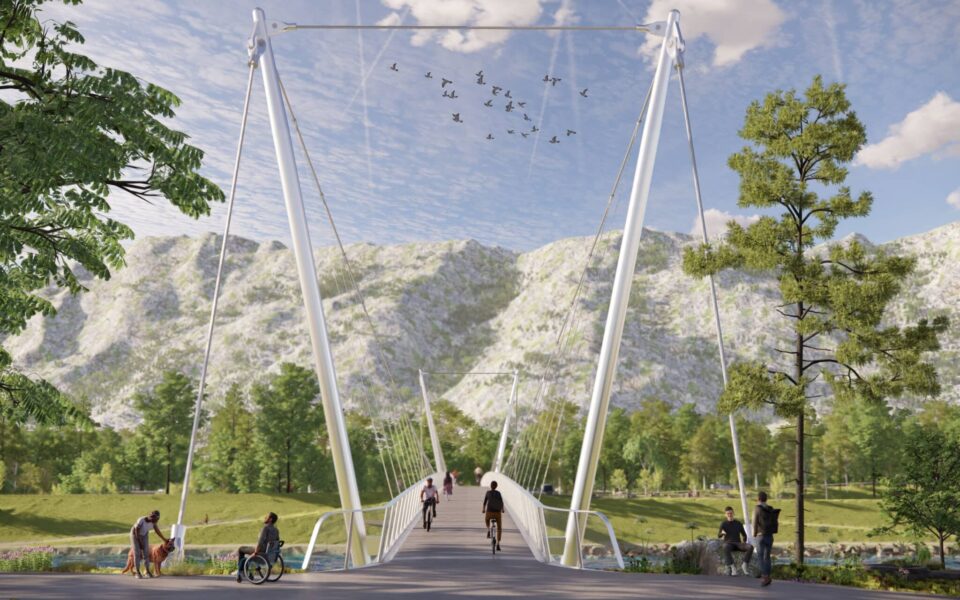 Rheinlicht verbindet Sennwald und Ruggell mit einer freitragenden Brücke, die Technik, Landschaft und gesellschaftliche Verantwortung zu einem klaren Zeichen im Rheintal formt. Der Entwurf setzt sich bewusst von den funktionalen Betonbauten der Umgebung ab und versteht die Brücke als Figur im offenen Raum zwischen Fluss, Dämmen und Wegen. Zwei V-Masten tragen ein Haupttragseil, das die leicht gebogene Fahrbahn über 123 Meter überspannt. Die Masten neigen sich in Richtung der Berge, Tragseile folgen dem Gefälle, und eine leichte Gussasphaltbahn führt als ruhige Linie über den Rhein. Ein durchgehender Handlauf und ein Netzgeländer aus Edelstahlseilen schaffen Transparenz und sichern die Wasserführung durch das sanfte Quergefälle. Das Tragwerk nutzt wenig Material, bleibt wirtschaftlich und erfüllt hohe Anforderungen an Hochwassersicherheit und Schwemmholzresilienz. Die Gründung erfolgt in den Dammkörpern; das Flussbett bleibt unberührt und behält seine Dynamik. Verzinkter Stahl, hochfester Beton, Edelstahlseile und Gussasphalt sind langlebig und gut wartbar. Der modulare Aufbau ermöglicht gezielten Ersatz einzelner Bauteile. Rheinlicht ist öffentlicher Raum: mit flachen Rampen, taktilem Leitsystem und stufenfreien Übergängen barrierefrei, in der Mitte mit einer Panorama-Zone als Ort zum Verweilen. Die Brücke schafft räumliche Identität und stärkt regionale Verantwortung, indem lokale Betriebe eingebunden und Transportwege kurz gehalten werden. Als Brückentyp steht Rheinlicht für eine offene, demokratische und haptisch erlebbare Infrastruktur – eine Querung, die Bewegung, Begegnung und ein zeitgemäßes Verständnis von Landschaft und Verbindung zusammenführt.