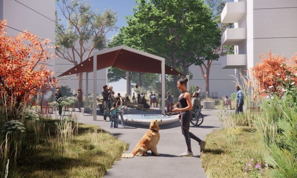 Der Gemeinschaftsplatz der Genossenschaft Röntgenhof in Tagelswangen bildet das Zentrum der neuen Siedlung und schafft einen offenen, gut nutzbaren Raum für alle Bewohner. Unter der Leitung von Carolin Riede entstand ein Platz, der soziale Nähe, Alltagstauglichkeit und klare Gestaltung verbindet. Die Pergola mit ihrem roten Rolldach ist das prägende Element. Sie bietet Schutz vor Sonne und Regen, lässt sich saisonal öffnen oder schließen und schafft einen überdachten Aufenthaltsraum mit bequemen Sitzplätzen. Das rote Dach nimmt Bezug auf das Genossenschaftslogo und setzt einen deutlichen Farbakzent. Der betonierte Brunnen ergänzt die Pergola um einen ruhigen Ort mit Wasser. Seine zeltartige Form mit drei Ecken bietet Sitzmöglichkeiten, und der niedrige Rand ermöglicht auch Rollstuhlfahrern den direkten Zugang. Das leise Plätschern schafft eine angenehme Atmosphäre und macht den Brunnen zu einem Anziehungspunkt. Eine robuste Asphaltfläche bildet die flexible Mitte des Platzes. Sie eignet sich für alltägliche Begegnungen, Spiele, kleinere Feste und gemeinschaftliche Aktivitäten. Insgesamt entsteht ein Platz, der funktional, inklusiv und klar gestaltet ist und das nachbarschaftliche Zusammenleben stärkt.