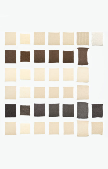 This pilot initiative presents a curated collection of wool samples from native sheep breeds across the Alpine region, not only documenting their fibre characteristics scientifically, but also exploring their potential through hands-on processing. We experimented with spinning, knitting, weaving, and felting techniques to better understand how each type of wool behaves. The aim was to make visible the unique properties of different breeds and to spark conversation within the textile industry, encouraging a broader appreciation of wool in all its forms, not just the finest grades. We worked with six Alpine sheep breeds: Engadin Sheep from Switzerland, South German Merino, Merino d’Arles from France, Montafon Stone Sheep from Austria, Bergamasca Sheep from Italy, and Carinthian Spectacled Sheep from Slovenia. Each breed is represented through raw fibre samples, yarns spun using different techniques, and swatches showcasing a range of textile applications. Each sample is accompanied by a card featuring both a narrative introduction and scientific data. This pilot lays the groundwork for a larger vision: the Swiss Wool Library, a long-term resource for research, education, and innovation around regional wool. By connecting science, craft, and design, we hope to reframe how we value and use this versatile natural fibre. The pilot was developped between January and June 2025 and was first introduced to the public at Milano Unica (Italy) in July and presented in Škofja Loka & Nova Gorica (Slovenia), Textiel Lab in Lyon (France) and Tangible Festival in Marseille (France). With Emma Casella, Nina Conrad, Fibershed DACH and AlpTextyles